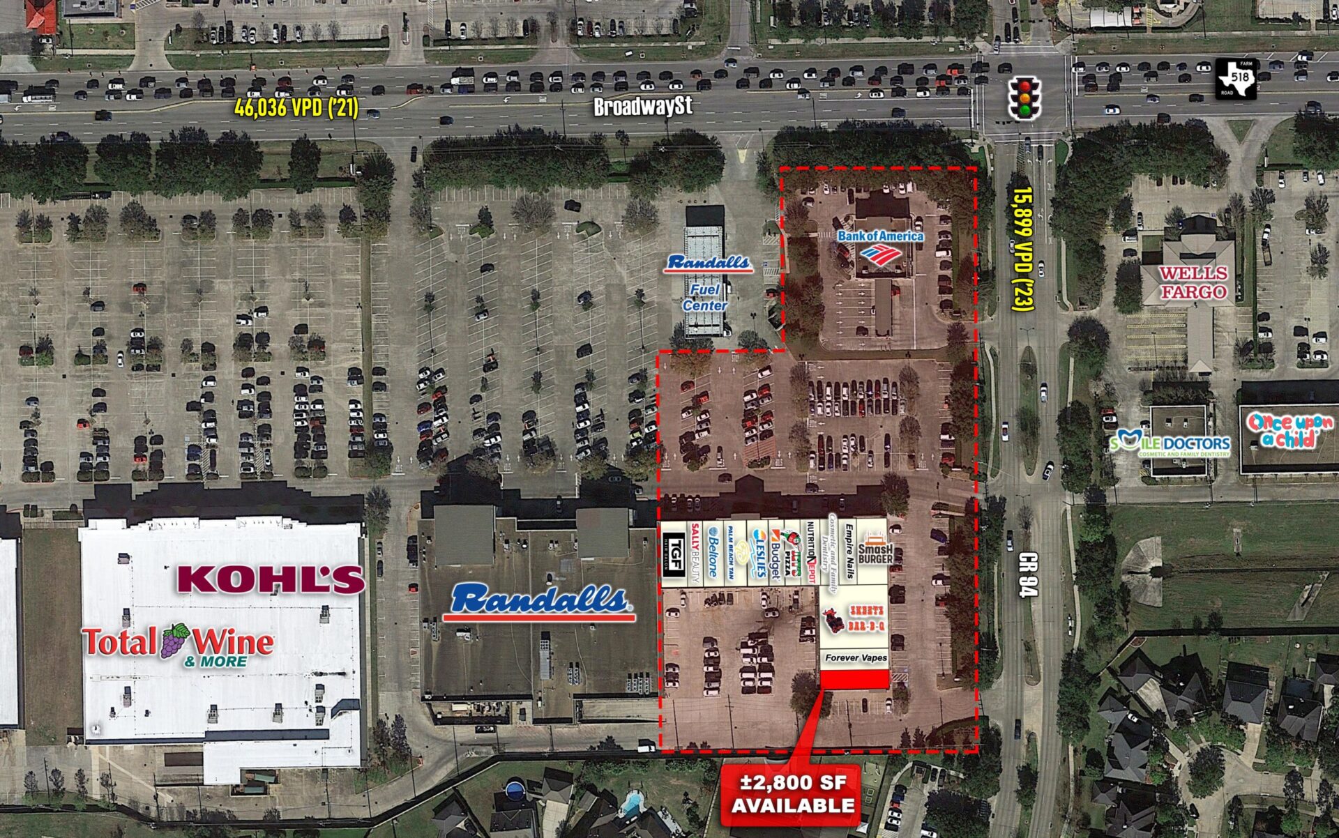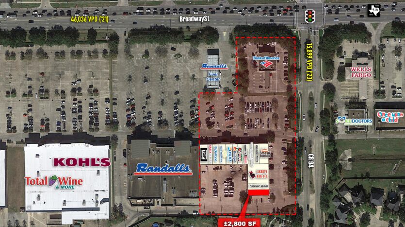 - Anchored by Randalls Grocery at the southwest corner of FM 518 (Broadway St) and CR
